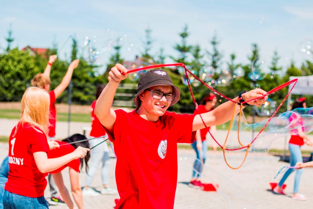 Potem było trochę oficjalnych momentów, ważnych zwłaszcza dla nas, gdyż to właśnie wtedy mogliśmy nie tylko Was powitać, ale także przedstawić i docenić wszystkie te osoby z Uśmiechniętej Planety, które na co dzień poświęcają swój czas i energię na wspólną pracę i zabawę, tak, byście byli zadowoleni. Był także pokaz baniek mydlanych oraz gigantyczny, planetowy tort, którym częstowaliśmy przybyłych gości.